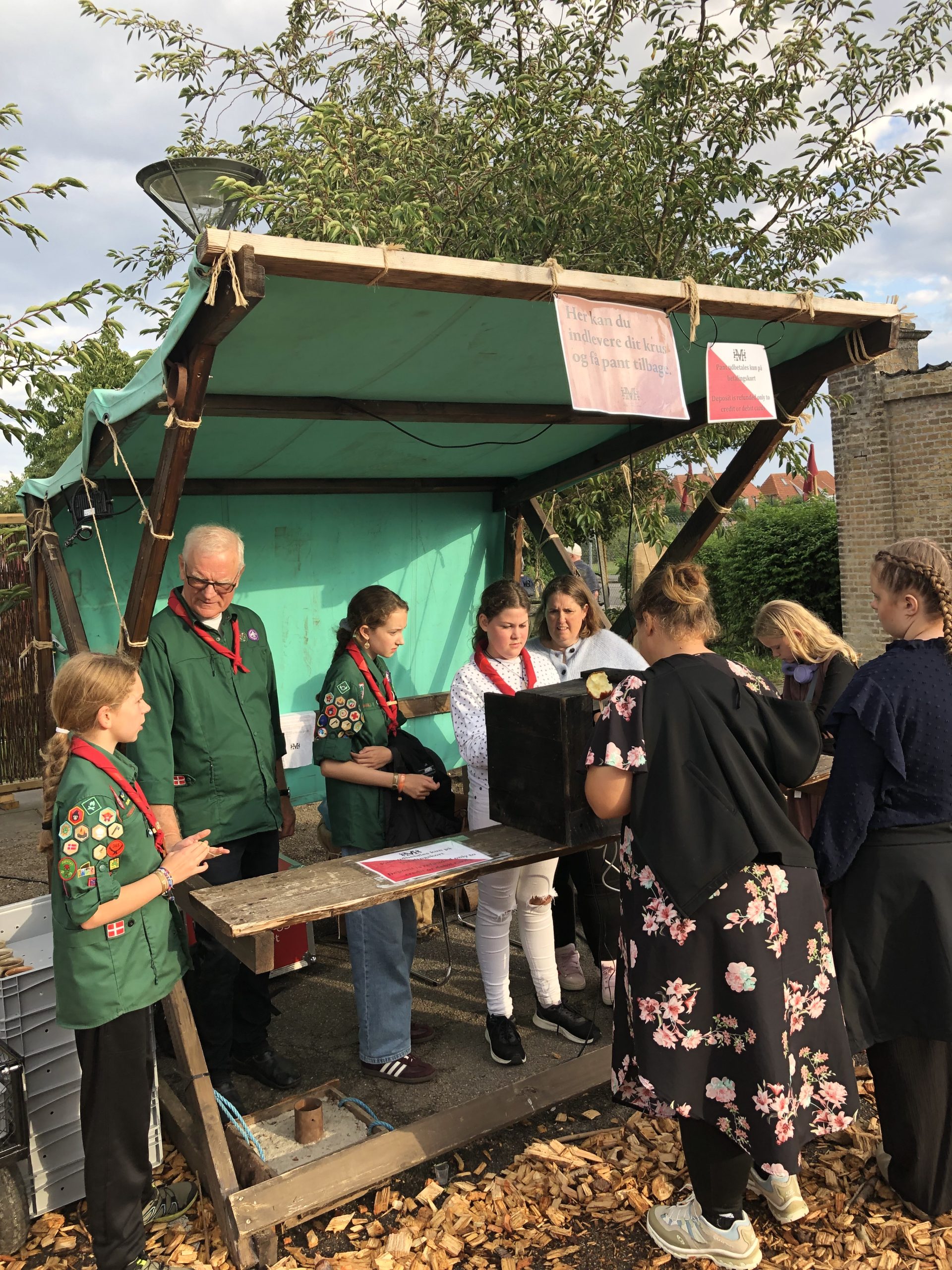 Hvert år i august har vi, i Stensballe Gruppe, en betalt tjans hos Horsens Kommune, hvor vi bemander deres 4 pantboder. Dette giver en virkelig god skilling til gruppen, til lejre, fornyelse af grej, oplevelser, forsødelse til de ugentlige møder og indkøb af mærker